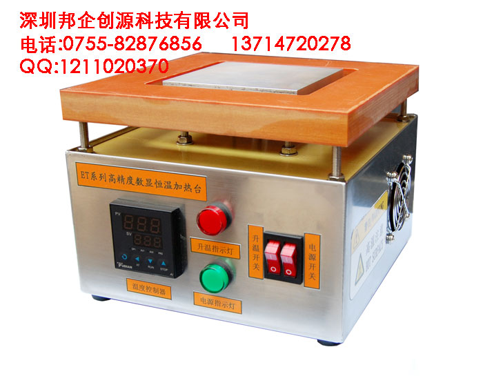 厂家直销恒温加热台-LED灯珠焊锡台-加热台-电子恒温加热台 优势说明:LED铝基板加热台,生化试验加热台,邦定恒温加热台,电子恒温加热台,铝基板焊接恒温加热台,贴片元件拆卸维修加热台,大平台恒温加热台,点胶恒温加热台,订做各种款式恒温加热台-厂家直销恒温加热台-LED灯珠焊锡台-加热台-电子恒温加热台 应用范围:任何电子行业封胶,点胶恒温加热。LED行业铝基板,灯珠焊接,维修.模具厂模蕊预热.工业各行业恒温加热样品的烘焙、干燥和作其他温度试验,是生物、生化实验室、分析室、教学研究的必备的工具。 一,LED铝基板焊接恒温加热台产品特性: 1.采用原装宇电PID人工智能数显温度控制仪,精度高,操作安全简单明确方便; 2.采用高品质固态SSR)继电器,寿命是普通触点式继电器的100倍; 3.采用多根高品质不锈钢发热管,维修方便快捷,故障率低; 4.整个面板采用纯铝材料制作,具有导热系数高加热快,受热均匀等特点; 5.炉体外壳全部为进口SUS304不锈钢材料制作,非特殊环境下使用决不存在掉漆生锈等弊端。 6.控制系统安装了散热风扇及散热窗口(因为温控系统是不能在45度以上高温下长期工作的,否则会提前报废,而市面上有些低价加热台就没散热风扇。)